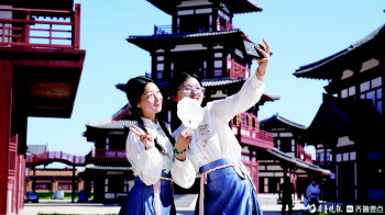 近日,乐陵影视城迎来了免费限时开放,在身穿汉服的志愿者引导下,游客穿梭于宫殿街市中,享受“一秒入唐”的体验。据介绍,乐陵影视城开放日活动实行预约参观制,“乐小旅e+”微信小程序预约功能一经上线,预约人数便冲到4000以上。