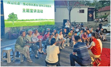 ◤主题宣讲吸引群众倾听。