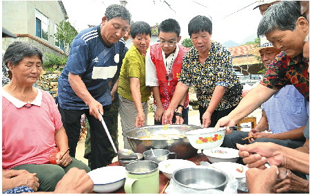 免费的大锅饭让村里的老人聚在了一起。