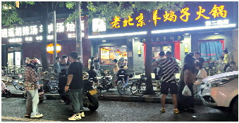 栾留伟生前开的火锅店门口排起长队