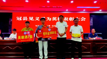 8月29日,冠县见义勇为英模表彰大会暨冠县首批见义勇为爱心单位签约仪式举行。在此次表彰大会上,聊城市见义勇为基金会理事长付强向王运佳颁发“聊城义士”荣誉证书和3000元慰问金以及慰问品,同时,向王运佳家庭颁发“见义勇为光荣之家”牌匾。