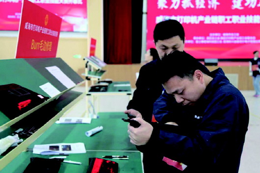 润滑油打点、螺丝固定、连接线插接、高压端子投放……日前,一场在打印机产业链上举办的职工职业技能竞赛在富士康威海科技园火热开赛,来自威海高区打印机产业链条上的119名优秀职工同场竞技,一决高下。