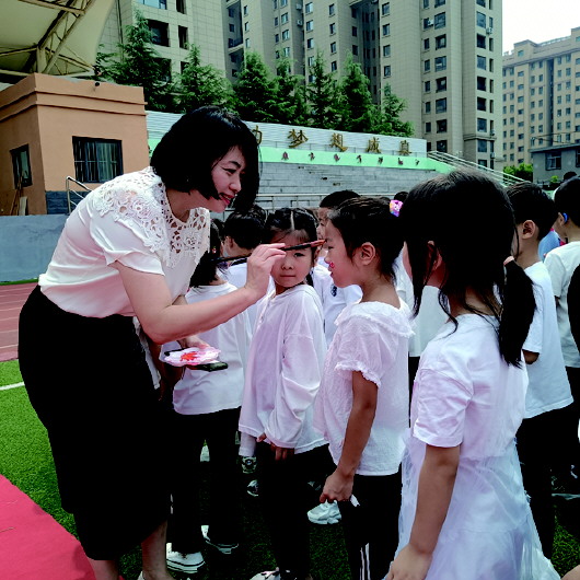 伴随着雄壮的国歌,开学典礼拉开帷幕。一年级的新生们在老师的指引下整齐走上红毯,以充满童真的笑脸迎接他们的“破笔开蒙”。老师们为一年级新生点朱砂,祝愿新生聪明伶俐,博学多才。学生们行礼拜师,感恩老师的关心、呵护和栽培。