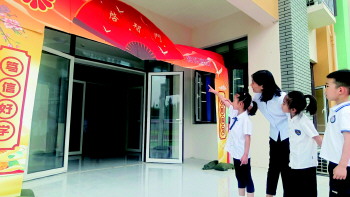 9月2日,曲阜市各学校又迎来开学季。在家长的陪同下,小学生王清芷背上书包来到曲阜市实验小学西校区。踏过五彩的“启智门”,驻足在孔子广场的汉白玉孔子像前,王清芷与其他师生及家长一起参加入学礼。