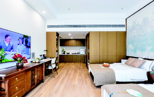 护理服务方面,针对长者在不同身体状态下的照护需求,打造1+6护理服务体系,以精准评估为基础,提供安宁护理、专属管家、生活照护、认知症照护、恢复性护理、慢病护理六大护理服务,满足长者多元需求。社区每个楼层都有护理站,都配有护理主管,主管该楼层专业护理、家属沟通、跨部门协调以及员工管理等业务,而护理人员在护理主管领导下,对该楼层实施24小时护理。长者或护理人员一旦呼叫,护理主管会快速赶来查看、处理,协调通知社区医养服务中心,医养中心根据老者的身体病情给予判断或安排转诊。