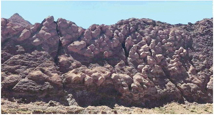 峡谷区域平均海拔1600米,最高山峰2048米。组成峡谷的奇峰群山由赭色的泥质沙岩构成,当地维吾尔语叫做“克孜利亚”,即红色的山崖。庞大的红色山体群形成于距今1.4亿年前的中生代白垩纪,经亿万年的风剥雨蚀,洪流冲刷,形成纵横交错、层叠有序的垅脊与沟槽,远看如诗如画,有的状若“布达拉宫”,似仙天琼阁;有的近瞧若人似物,如梦似幻,惟妙惟肖。令人有鬼斧神工,奇景天成之慨叹。在阳光照射下,岩石光效璀璨夺目。