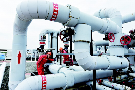 近日,胜利油田河口采油厂油气集输管理中心义和联合站员工对“余热代气”节能降耗项目生产工艺流程进行巡查维护,确保安全高效生产。所谓“余热代气”,是指利用油气集输生产过程中采出水的余热能量替代天然气,既保证生产高效运行,又实现节能降耗。