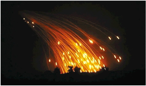除了铝热弹,容易引起燃烧和环境破坏的还有白磷弹。因为它会给受害者带来可怕的烧伤折磨,数十年来,在战争中使用这类弹药一直备受争议,引发了道德和法律问题。