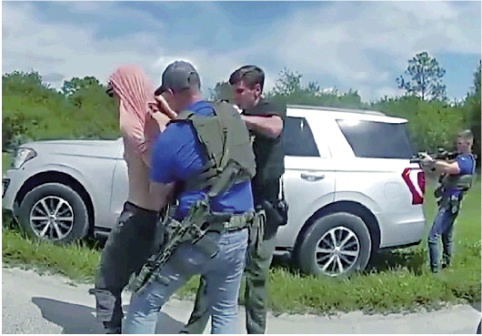 佛州马丁县警方公布的执法人员在州际公路上抓捕嫌疑人劳思的视频截图。 IC photo