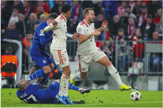 凯恩(右一)帮助拜仁单场轰进9球。 新华社发