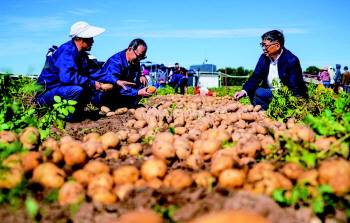 内蒙古商都县: 9月11日,国家马铃薯工程技术研究中心在内蒙古乌兰察布商都县培育的马铃薯“芯”品种喜获丰收。