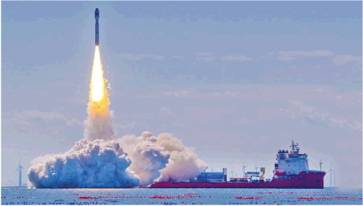 9月24日上午,在山东海阳附近海域,由中国运载火箭技术研究院抓总研制的总长约31.8米、总重约140吨的捷龙三号遥四运载火箭竖立在“东方航天港”号发射船上。随着点火指令发出,捷龙三号运载火箭尾焰喷薄而出,采用“太空拼车”的方式,将天仪41星、星时代-15卫星等八颗卫星送入500公里高度的太阳同步轨道,海阳第十三次海上发射任务取得圆满成功。