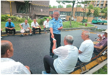 ▲向辖区居民发放警民联系卡。