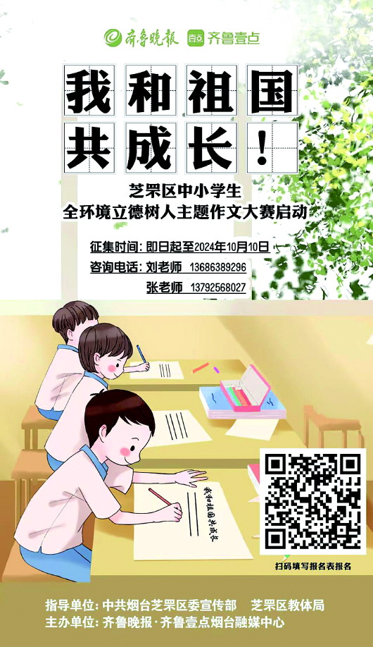 育人之本,在于立德铸魂。此次作文大赛由中共烟台市芝罘区委宣传部、芝罘区教体局指导,齐鲁晚报·齐鲁壹点烟台融媒中心主办,将以“我和祖国共成长”为主线,秉持全环境立德树人的理念,让教育与实践相结合,搭建创新协作平台,展现新时代青少年的精神风貌。