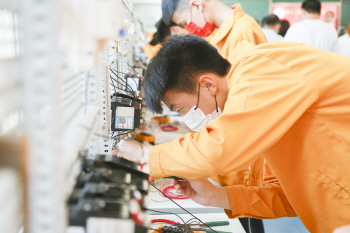 学生参加维修电工实训。