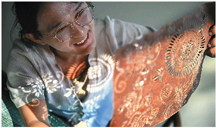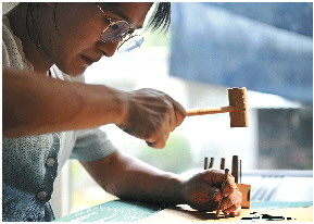 蓝印花布的花版几乎全是她一刀一刀刻出来的。