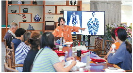 王英去全国各地讲课,传授蓝印花布的传统技艺。