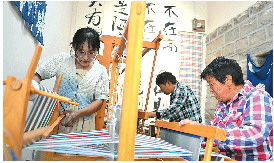 王英正在织布机前忙碌着。