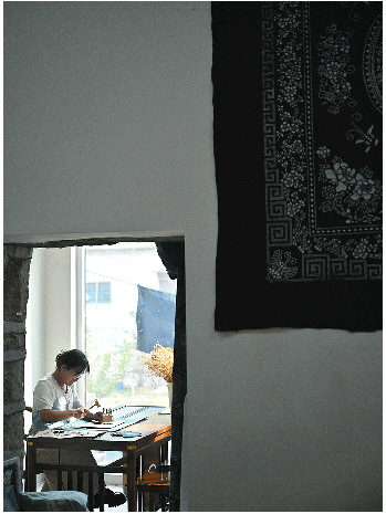 除了外出讲课和考察,王英大多时间都在染坊里忙着制作。
