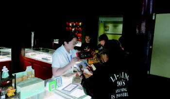 游客正在挑选心仪的文创商品。