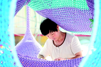 工人正在加工绳网