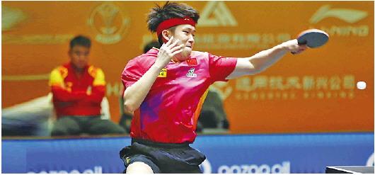 10月8日,中国选手王楚钦在比赛中回球。 新华社发