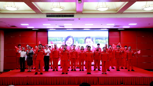 据了解,活动现场,员工们共同演唱《红旗飘飘》《我们的中国梦》等歌曲,为祖国母亲献上最真挚的祝福。