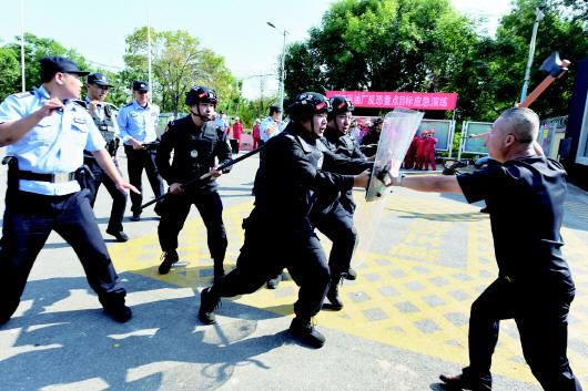 据了解,演练模拟首站中控室值班人员在视频巡查过程中,发现正门东侧有2名男子企图闯入站库,被值班人员拒绝后,该2名男子手持棍棒、斧头欲强行通过大门;值班人员立即向站内值班干部、公安机关汇报情况,采油厂启动应急预案,各部门迅速集结、高效处置,确保站库人员和财产安全。演练结束后,采油厂组织应急处置总结会,提高应急预案的科学性、实操性。