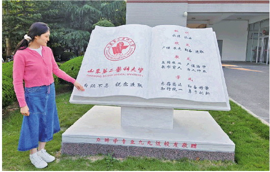樊姝彤在山东第二医科大学校园里。