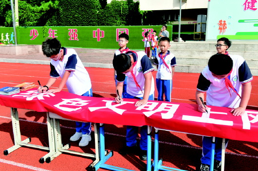 作为践行雷锋精神的主要载体,学校不仅将入学、入队、毕业典礼以及艺术节、体育节、读书节、科技节、生活技能节等“三仪式、五节日”的特色德育活动与雷锋精神进行了深度融合,还通过“小手拉大手”的形式,组织开展了一系列实践活动:走进社区,化身“环保小卫士”;走上街头,化身“交通引导员”;走进敬老院,化身“暖心小义工”;走进红色教育基地,化身“红色讲解员”,等等。