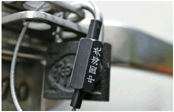完成报关后,海关在车厢打上铅封。
