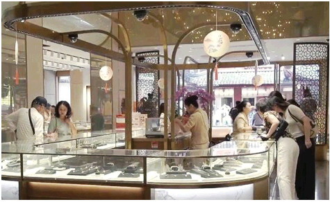 不过在今年上半年也有黄金珠宝品牌成功实现了逆势增长,老铺黄金就是其中之一。该品牌上半年收入猛涨148%至35.2亿元,利润暴涨199%至5.9亿元,毛利率为41.3%,股价曾连续7日累计升幅高达37%,目前总市值超210亿港元。老铺黄金从一开始就主打高端产品,单品价格动辄上万元,主打古法黄金。该品牌目前在14个城市拥有33家自营门店,门店选址也是SKP及万象城等高奢商场。据老铺黄金店员称,古法黄金系列今年以来已经涨价两次,平均涨幅在9%左右。