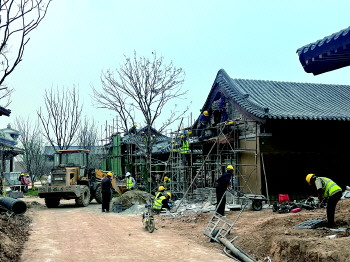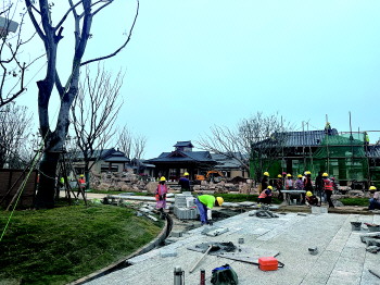 “我们每天投入400多名施工人员奋战在一线,外装屋面盖瓦、木构加工施工、景观土方开挖、景石垒砌施工、市政埋管施工、室内精装等多种施工同步进行。”济宁城投鲁源小镇核心区项目工程师杨印政介绍,多项施工同步进行的同时,坚持高标准、高质量建设,时刻紧绷安全生产这根弦,全力冲刺全年任务目标。