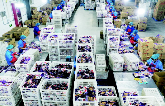 穿行在比邻而立的各类车间,看到的是繁忙有序的生产场面。智能控制屏幕前,工人们通过实时监控生产数据,确保产品质量和生产安全;包装车间内,刚刚出来的产品经称重、封口、贴标,即将送往分拣公司。城头镇党委副书记朱坤边走边向我们介绍,为促进豆制品产业提档升级,城头镇以空间重构、存量重整、质效重振为目标,投资1.2亿元实施了城头豆制品产业孵化基地项目建设。目前已建成高标准钢结构厂房4栋、3.5万平方米,吸纳50余家市场主体入驻,实现了当年建设、当年完工、当年使用。