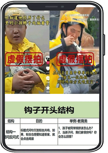 刷到第一个视频,你可能会与主人公一起沉浸在悲伤中,刷到第二个视频,你可能会感叹,为什么厄运总是专挑苦命人,当算法再次推送类似的视频时,理智会告诉你:这些极有可能都是摆拍的。