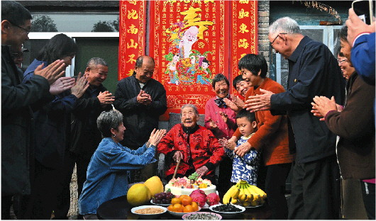 “娘,祝您生日快乐!”“老奶奶,生日快乐!”“姥娘,这是给您的红包!”10月31日,淄博市淄川区罗村镇大王村一个农家小院里,洋溢着喜庆气氛。平时寂静的小院一下子拥进来30多口人,祝福声此起彼伏。