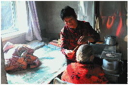 每天起床儿媳妇帮老人梳头。