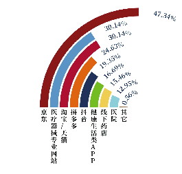 在健康器械产品的购买平台选择中,京东以47.34%的比例成为最受欢迎的购买渠道。