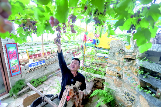 10月15日,爱渡农业负责人柳榴在大棚里摘葡萄。吕奇 摄