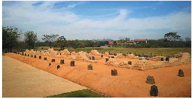 盘龙城遗址位于湖北省武汉市黄陂区,处在盘龙湖半岛,遗址三面环水。在盘龙城遗址发现有夏商时期长江流域的规模较大、出土遗存较为丰富的城邑遗址,城垣最晚的建设时间,距今已三千多年。