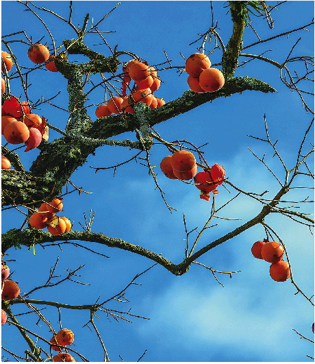 从三奶奶90岁起,大儿子不让她出门,只在院子里活动,怕她出门摔跤。门前的柿树栽了大约十几年了,年年满树柿子,她总要留到霜枯,才让人摘。柿子经几场霜打,涩味尽去,自然鲜甜。三奶奶比我母亲大三岁,没事了,母亲会登门跟她聊天,更多时候,她们一起纳箅子、纳鞋垫。柿子下树时,三奶奶随便寻一年轻人,踩板梯,把柿子摘了,送给街坊邻居,留一些给儿孙。她总会留几个柿子在树上。三奶奶说,留个就是灯笼,会老远跟人打招呼。有鸟雀饿了,也能来吃几口。留下的柿子,儿孙不吃,她便把柿子搁在墙头上,给喜鹊吃。