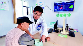 处置完应急情况后,李兴荣回到“康养小院”的诊断室。此时,70岁的史广臣老人正配合另一位值班医生进行心电图检查。“史大爷有心脏病史,定期来这里检查。以前村里老人只要身体不舒服,只能到上级医院做进一步检查,现在有了远程心电设备,村里做检查、市里出诊断。我做完检查上传后,很快就能拿到曲阜市中医院的诊断结果,省心省时省力。”在线“摇”医生这种模式,李兴荣对此感受颇深。“如果村里老人出现突发疾病、重症诊断等情况,通过远程视频会诊,寻求三甲医院医生的帮助,可以让患者及时得到救助。老人看病方便了,我们心里踏实多了。”