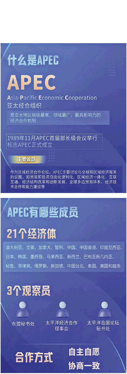 今年恰逢APEC成立35周年。亚太经合组织是建设开放型世界经济的先驱,自1989年成立以来,经过多年的发展,已经成为亚太地区层级最高、领域最广、最具影响力的经济合作机制。