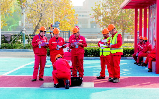 近日,在胜利油田孤东采油厂领军工作室实训练兵场上,“最强操作”第五期实训班技能对抗赛区,参赛队员正在进行佩戴正压式空气呼吸器演练。据了解,实训班训练内容既涵盖更换游梁式抽油机载荷传感器、更换游梁式抽油机一体化变送器等日常标准化操作项目,还包括佩戴正压式空气呼吸器、心肺复苏+AED应急救护、桌面推演等应急处置实操训练。