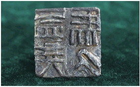 11月8日,记者在沂源县博物馆看到了这枚铁印。它长7.6厘米、宽7.4厘米、通高6.7厘米,上小下大、呈台状,上下两层均为覆斗形,通体锈蚀较重,印面刻有阳文“盖侯馬久”四字,也因此被称作“盖侯马久”铁印。