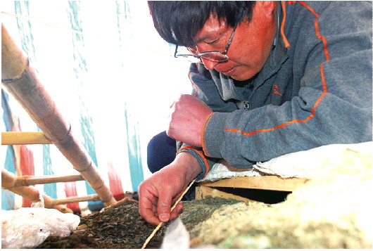 任相宏在纪王崮春秋墓发掘中。 受访者供图