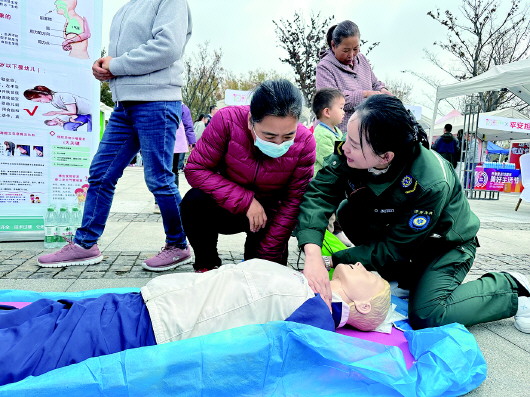 不仅如此,医院还在现场设置了急救知识普及专区,医护人员教授了海姆立克急救法和心肺复苏(CPR)等实用技能。现场的互动教学氛围热烈,许多市民踊跃学习并参与实践操作,不少人表示通过活动掌握了急救技能,获益匪浅。