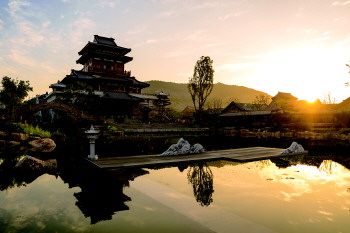 夕阳映照下的鲁源小镇。