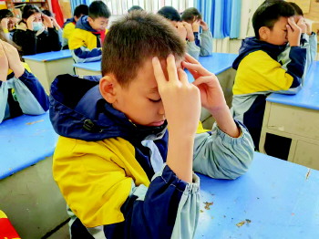 学校坚持常规管理与近视防控相结合,在日常学习生活中注重培养规矩意识,要求每位学生做到“三净”(个人净、教室净、校园净)“三正”(读姿正、写姿正、坐姿正)“三平”(课本平、试卷平、作业本平)“三齐”(卫生工具齐、书洞齐、桌凳齐)“五序”(间操有序、课间活动有序、接水有序、路队有序、上下楼梯有序)。一年级入学前两周进行立规养习教育,尤其是训练学生正确掌握“三姿”,各学科教师监督并随时纠正学生不良读写姿势。这样,从小事着手,让近视防控成为一种习惯。学期末,各年级进行三姿评比。