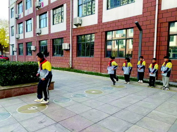 校内设有室内外运动场,其中包括300米环形跑道、足球场1个、羽毛球场3个、篮球场4个、“跳房子”14个、乒乓球台20余个等多种活动场域,每天有150分钟开展室外体育活动,接受自然光,减轻学生眼睛疲劳。